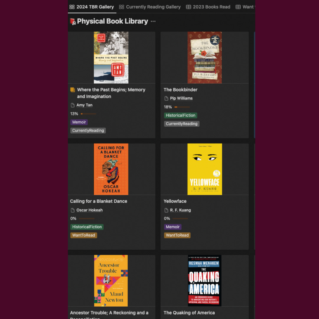 Every year, I get excited about the potential of all the books I will read in the year ahead. I largely read on a Kindle ( both using a Kindle Paperwhite and also the Kindle App on my phone) but I also read from paperback books from time to time. I love that I always have multiple books with me on my phone using the Kindle App. I typically read between 30 and 50 books in a year, a mix of fiction, non-fiction, and memoir. I use my Notion book tracker as well as my Kindle app “Reading Insights” to keep track of my reading streaks. I try and read for at least 30 minutes a day. I use the Libby App via my local Library to check out ebooks that I read on my Kindle app.