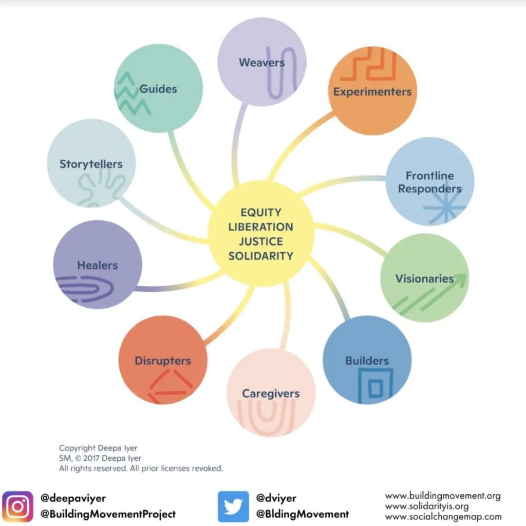 I love Deepa Iyer's frameworks for the diversity of roles in movement work, and how we all tend to the different growing edges of cultural growth in different ways.